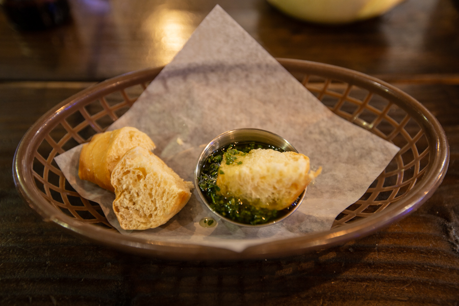 Anytime I am looking for the next great meal I always try to look for something different. What is it about a place that will make it memorable when I think back to my travels in Bend, Oregon? Bangers and Brews made that quite easy for me, I can close my eyes and instantly go back to my foodie experience there. The name of the place doesn’t give away what they serve so I walked in blind not knowing what is served here, all I knew was my wife put it on my list of places to try while visiting. I was craving root beer, most places don’t have it and this place did so I ordered one and it hit the spot. I enjoyed a starter Big Ed’s baguette bread with chimichurri.