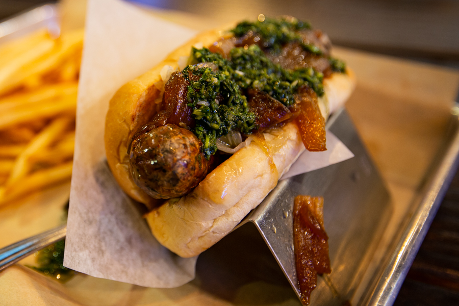 On their menu, Bangers and Brews helps you out by giving you the steps on how to order your sausage. First you pick your type of sausage, I went with the wild boar with garlic sausage. Next you pick two toppings so I selected sauerkraut and grilled onions. Last you select a sauce, I picked the chimichurri sauce on top. This combination reminded me of my trip to Argentina and this place nailed it. The wild boar had an enormous amount of flavor, it actually had a very sweet taste to the meat. The sauerkraut and grilled onions are even sweeter than I expected, it was win on all levels.