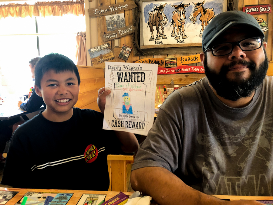 The hostess offered Diego our now 13 year old, a kid menu that included a wanted coloring poster and crayons. He accepted her offer and put it on our table. I really thought he wasn’t going to draw anything. However he noticed that there were other wanted posters hung up around the restaurant. Seeing this encouraged him to draw something. He drew a picture of his dad. I thought it was very sweet to get in the spirit of it. My days are numbered with him acting like a young kid, he will soon begin behaving as teenager. I pray his heart will stay sweet and loving as always.
