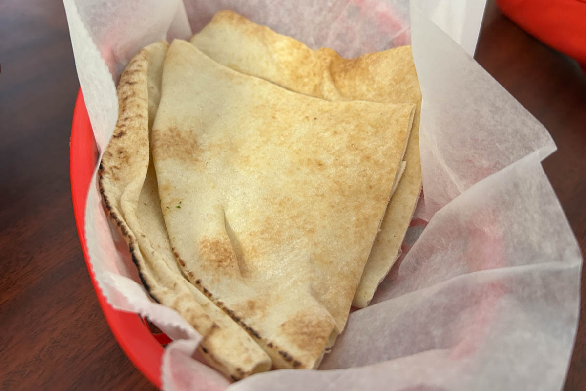 Next the hummus arrived along with serving of pita bread. The hummus hit the spot as it was perfectly seasoned and had lots of the olive oil on top.